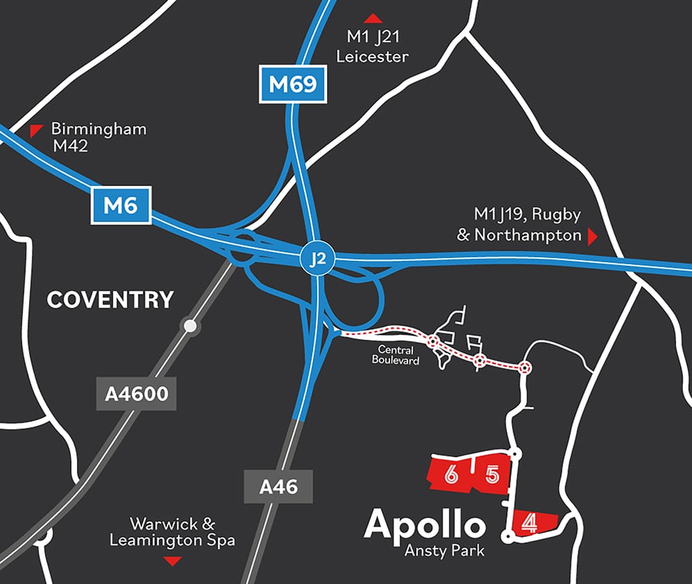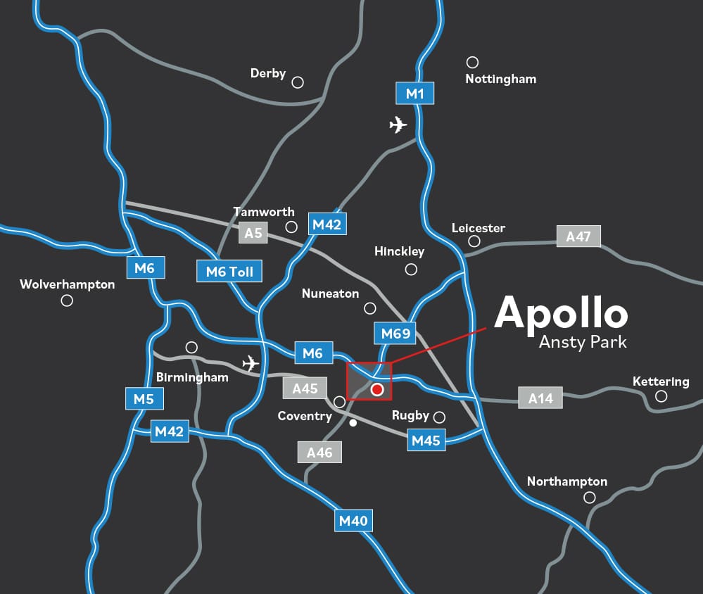 Apollo, Ansty Park, Coventry is a unique and established 52 acre development strategically positioned adjacent to M6 Junction 2 and M69 Junction 1, providing unrivalled access to the UK’s motorway network.
